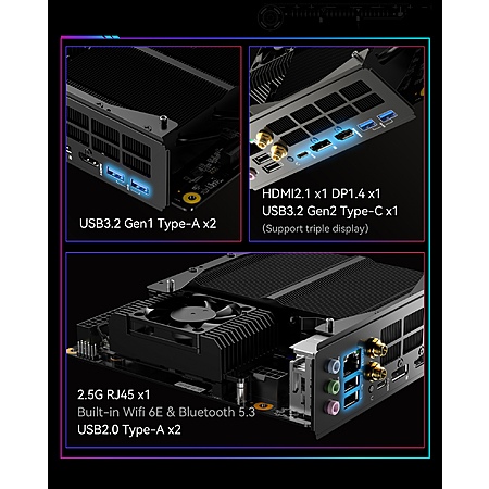 - CPU heatsink (120mm fan required) + Active SSD Cooler /w Fan