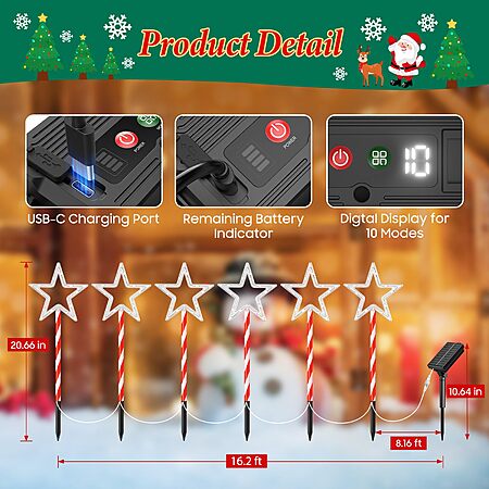 - Upgraded 2 Charging Options: Featuring indicator lights for displaying the power status and lighting mode, this solar panel offers more control over your lighting; It can not only be charged via solar energy but can also be charged with the included USB-A to USB-C cable on cloudy days;