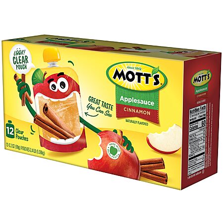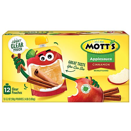 Model: Mott's Cinnamon Applesauce, 3.2 Oz Clear Pouches, 48 Count (4 Packs Of 12), No Artificial Flavors, Good Source Of Vitamin C, Nutritious Option For The Whole Family