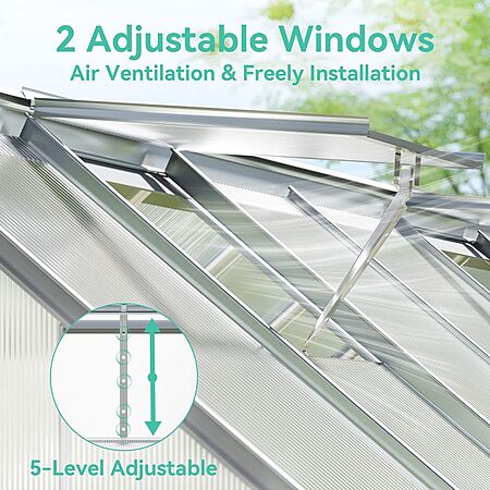 - 5-Level adjustable window angles, allowing more precise control of ventilation and temperature.