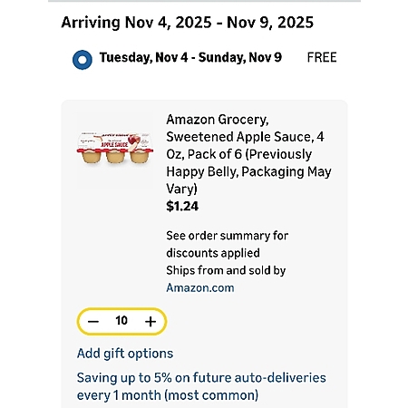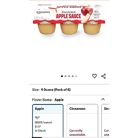 Amazon Grocery, Sweetened Apple Sauce, 4 Oz, Pack of 6 (Previously Happy Belly, Packaging May Vary) $1.1