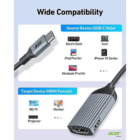 NewEase Tech Gadget Store via Amazon[amazon.com] has acer USB-C to HDMI Adapter 4K@60Hz High Speed, Thunderbolt 3/4 Type C to HDMI Converter on sale for $8.99. Shipping is free w/ Prime or on orders $35+.