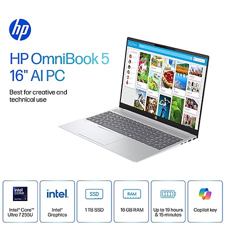 HP OmniBook 5 16" 2K Laptop, Intel Core Ultra 7 255U, 16GB RAM, 1TB $550 @ Staples