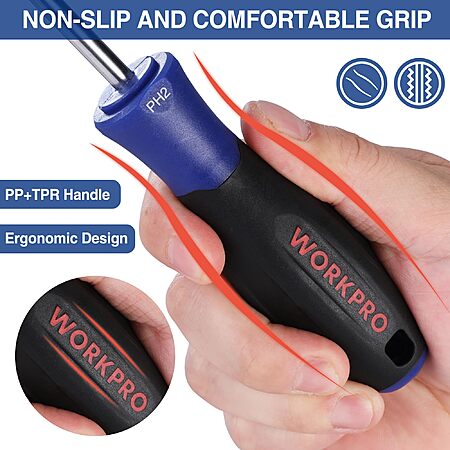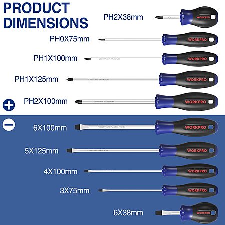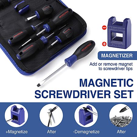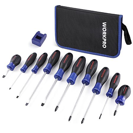 Model: WORKPRO 10-Piece Magnetic Screwdriver Set with Pouch, Phillips, Slotted, Flat Head Screwdriver Include Magnetizer, Screwdriver with Non-Slip Grip, for Home Repair and DIY Projects