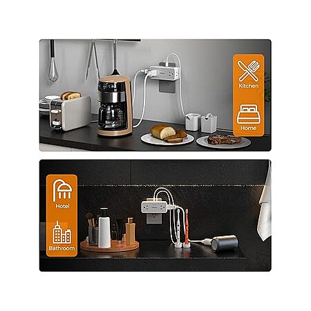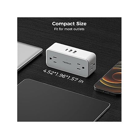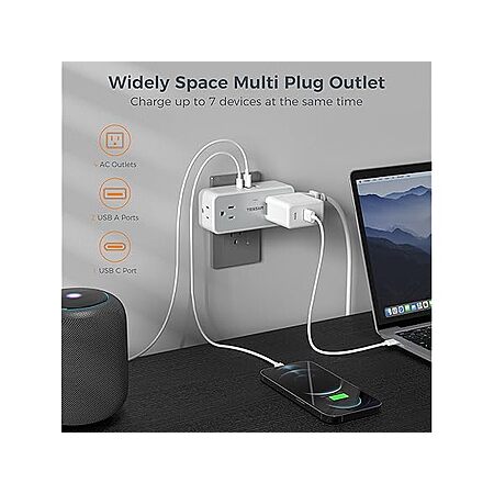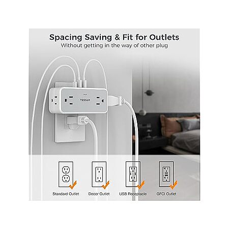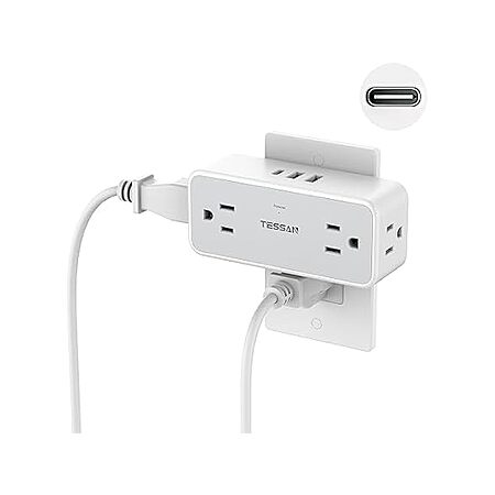 $9.99*:TESSAN Outlet Splitter with 4 Outlets, 2 USB-A, 1 USB-C, Surge Protection 900J, Widely Spaced Multiple Plug Expander