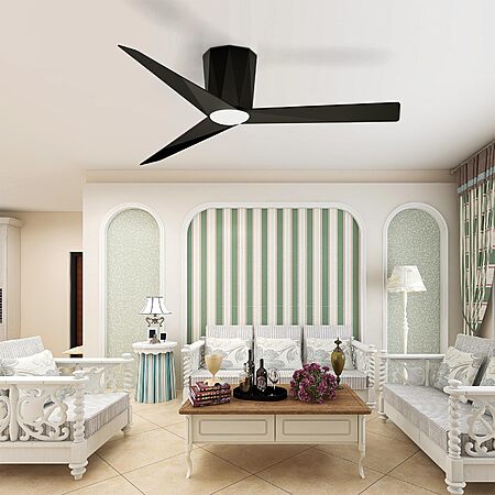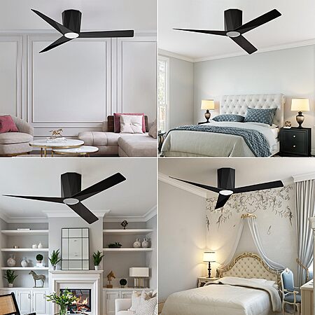 Roomratv Black Ceiling Fans with Dimmable Led Lights, 52 Inch Flush Mount Ceiling Fan Remote Control, Quiet DC Reversible Motor for Summer Winter, Low Profile Modern ABS Blades Indoor Use, ETL Listed - Amazon.com
