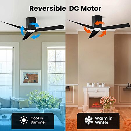 Model: Roomratv Black Ceiling Fans with Dimmable Led Lights, 52 Inch Flush Mount Ceiling Fan Remote Control, Quiet DC Reversible Motor for Summer Winter, Low Profile Modern ABS Blades Indoor Use, ETL Listed