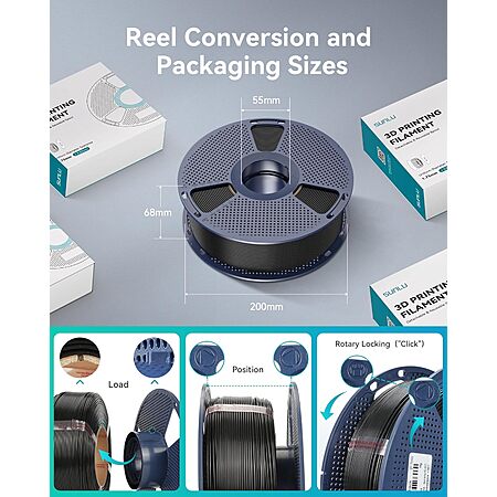 4-Pack 1kg SUNLU PETG 1.75mm 3D Printer Filament Spool Bundle (Black)