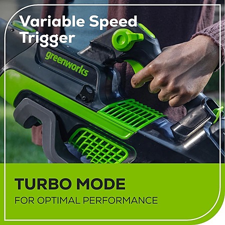 - High speed Turbo Mode loosens up wet leaves and powers through debris with ease.