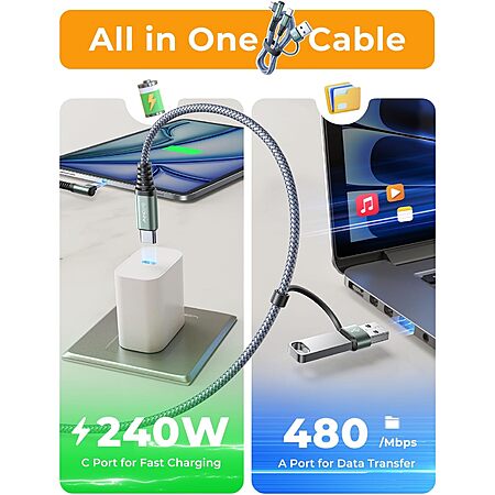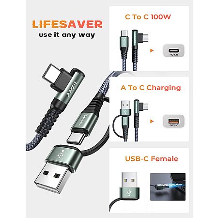 240W AINOPE 10' Right Angle USB-C Cable w/ USB-A Adapter $5.91 + Free Shipping w/ Prime or on $35+