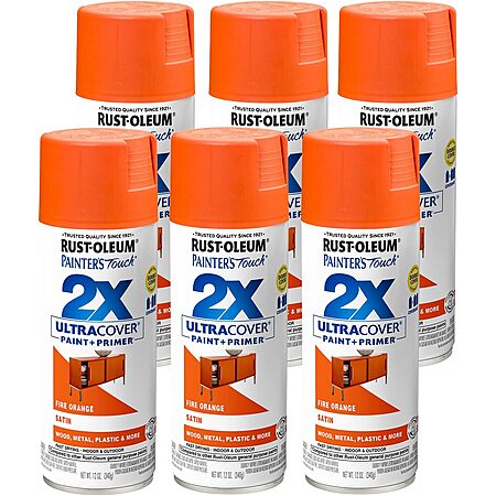 6-Pk 12oz Rust-Oleum Painter's Touch 2X Ultra Cover Spray Paint (Fire Orange)