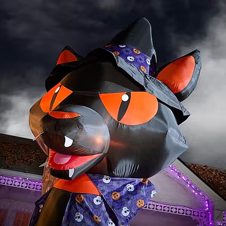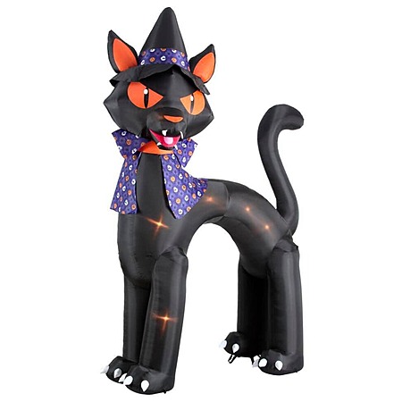 Kick up the fright factor with the amazing Home Accents Holiday 14 ft. LED AirBlown® Archway Black Cat Witch! Styled with a patterned cape, matching witch hat and claws, this Halloween archway creates a spooky entrance for trick-or-treaters and party guests. Our archway inflatable makes a spooktacular, one of a kind addition to your Halloween decorations. Includes ground stakes and tethers for an easy set up.