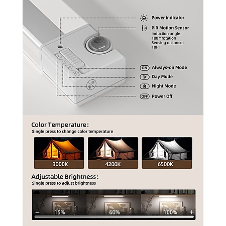 - Adjustable Brightness & 3 Color Temperatures: Choose from warm white, natural, or cool white, and support 10% to 100% stepless dimming.
