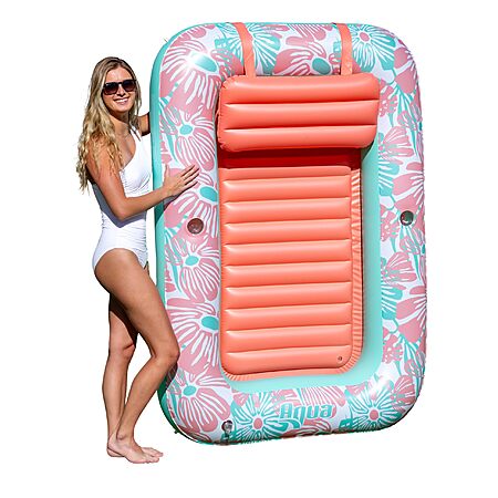 Aqua Inflatable Tanning Pool Lounger – Large (71 x 48 in) – Premium Pool Float with Cupholders and Removeable Pillow for Relaxation and Fun, Pink Flower Coral $22.1