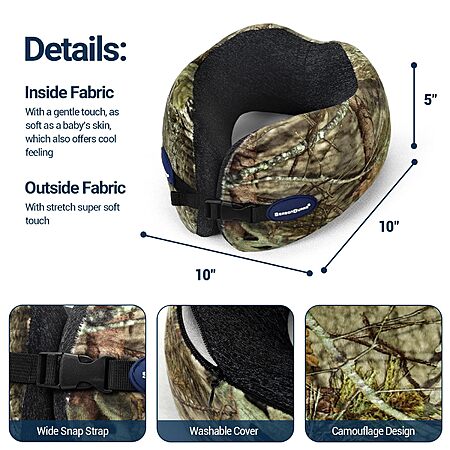 Model: Travel Car Airplane Neck Pillow - Memory Foam Head Rest Support Traveling Essentials - Sleeping Neck Cushion Pillows for Adult Kids - Long Flight Air Accessories Gift for Women - A01 Mossy Oak