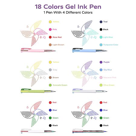 • Variety of Colors: These colored pens features 18 different ink colors: black, blue, red, green, purple, macaron pink, sky blue, olive green, avocado green, brown, gray, yellow, pink, light brown, rose red, teal, turquoise, and light blue