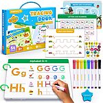 • Erasable & Reusable Tracing Book For Toddlers: Dry erase letter tracing for kids ages 3-5 is made of safe, waterproof, and durable paper, with every page reusable. Traceable letters and numbers for preschool comes with 8 colored whiteboard markers that write smoothly without ink breakage even during long periods of use. A cute star-shaped eraser can make the pages look like new in a gentle wipe—even ink marks left for a week can be easily erased with a damp towel, allowing kids to start their next creation anytime.