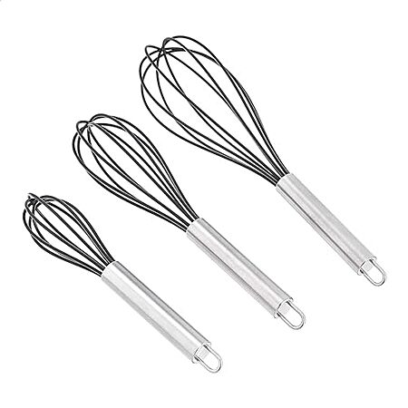 $6.55*: 3-pk Amazon Commercial Stainless Steel & Silicone Coated Whisk Set (8", 10", 12") at Amazon