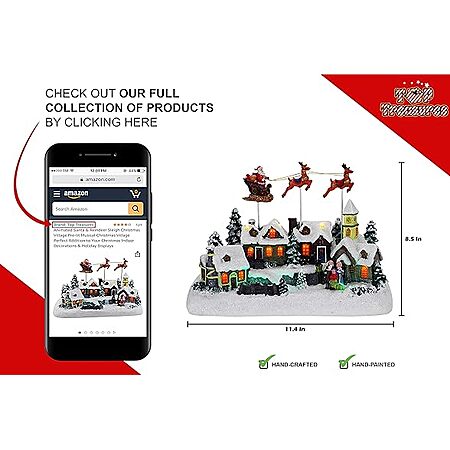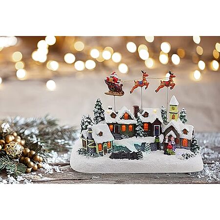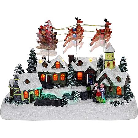 11.4" x 8.5" Top Treasures Pre-Lit Animated Santa & Reindeer Sleigh Christmas Village $29.99 + Free Shipping w/ Prime
