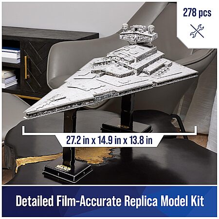 Detailed Replica: Embark on an epic building toys adventure with a Star Wars room decor piece. This 4D Build Imperial Star Destroyer cardstock model kit is over 2ft. wide with movie-quality details, plus glue and a stand