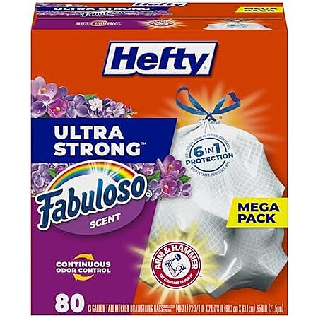 [S&S, AC] $9.57*: 80-Count 13-Gallon Hefty Ultra Strong Tall Kitchen Trash Bags (Fabuloso) at Amazon