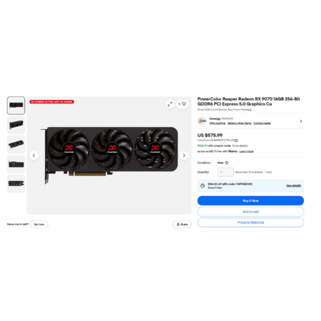 PowerColor Reaper Radeon RX 9070 16GB 256-Bit GDDR6 PCI Express 5.0 Graphics Card - $525.99 + Free Shipping