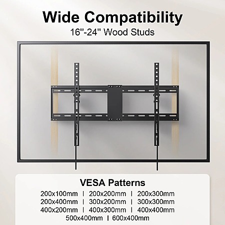 Fits VESA patterns from 200x100mm(8"x4") to 600x400mm (23.6"x16")