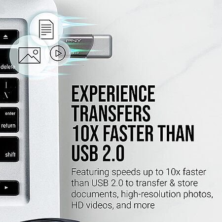 - Transfer speeds up to 10 times faster than standard USB 2.0 flash drives