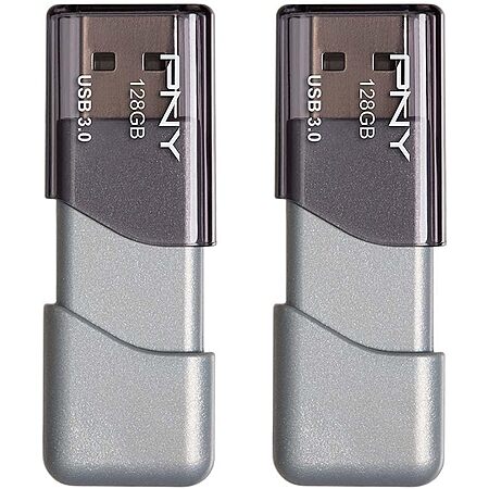 2-Pack 128GB PNY Turbo Attaché 3 USB 3.0 Flash Drives (Silver, P-FD128X2TBOP-MP) for