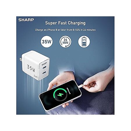 Sharp 35W GaN Fast Charger Block with 2- USB-C Ports + Free Shipping w/ Prime $6.99