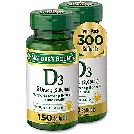 [S&S, AC] $6.56*: 2-Pk 150-Ct Nature's Bounty 50mcg (2000IU) Vitamin D3 Softgels at Amazon