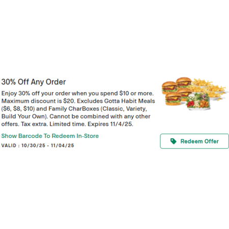 The Habit Burger & Grill: 30% off Order $10 or More through November 4, 2025