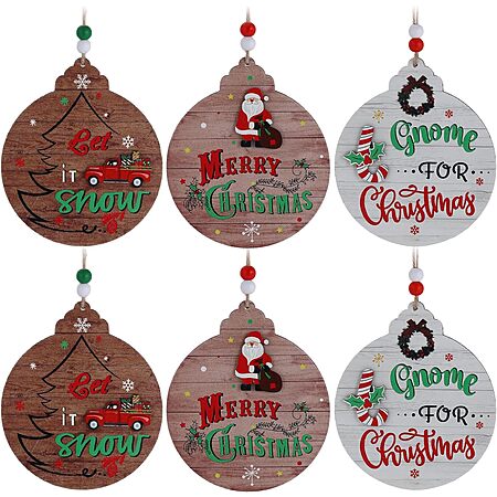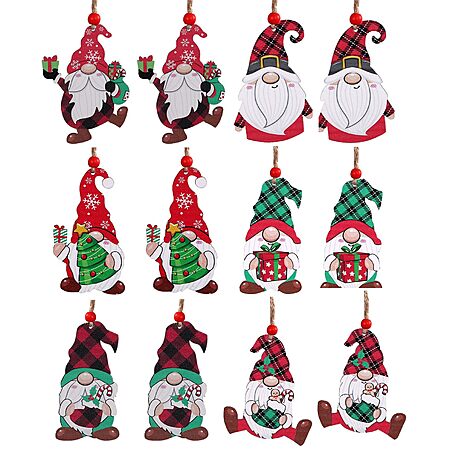 - Christmas Tree Decoration Set: Our Christmas decoration set includes 6 different wooden hanging decorations, 2 of each, for a total of 12 pieces.. These cute little hanging decorations can well decorate the Christmas tree and bring visual enjoyment. Classic red and green color matching cartoon hanging decorations, intense Christmas atmosphere.