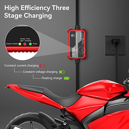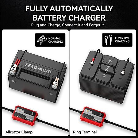 [2-Pack] FOVAL Fully Automatic Trickle Charger, 1000mA 12V Smart car Battery Charger, Battery Maintainer, Float Charger for Motorcycle Car Lawn Mower Boat $31.18