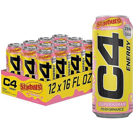 12-Pk 16-Oz Cellucor C4 Zero Sugar Performance Energy Drink (Starburst Strawberry)