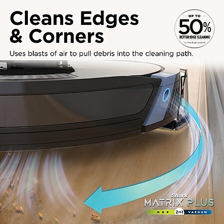 Shark Matrix Plus 2in1 Robot Vacuum & Mop with Sonic Mopping, Matrix Clean, Home Mapping, HEPA Bagless Self Empty Base, CleanEdge, for Pet Hair, Wifi, Black/Silver $299.99