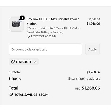 (members only price must have or need to sign up for Ecoflow Account - and also receive Ecoflow loyalty program EcoCredits for purchase)