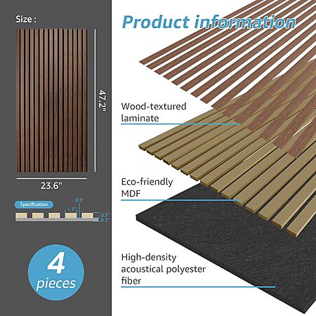 4-Pack 47.2" x 23.6" Art3d Wood Slat Acoustic Panels for Wall and Ceiling (Dark Walnut) $103 + Free Shipping