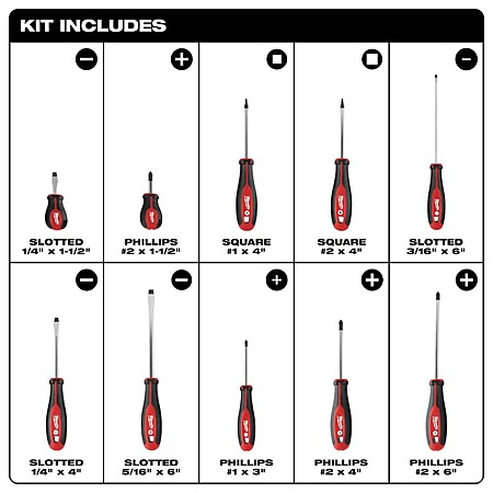 10-Piece Milwaukee Combination Screwdriver Set $19 + Free Shipping