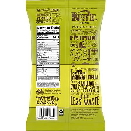 Amazon has 7.5-Oz Kettle Brand Potato Chips (Pepperoncini) for $2.56 - $0.26 when you clip the 10% coupon on the product page - $0.13 (5%) when you check out via Subscribe & Save = $2.17. Shipping is free with Prime or on $35+