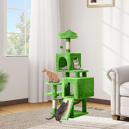 DWVO 54 in Multi-Level Cat Tower: Cats Tree for Indoor Kittens, Pet Furniture with Kitty Condos, Sisal Scratching Posts, Plush Perches, Cozy Hammock, Green $35.04