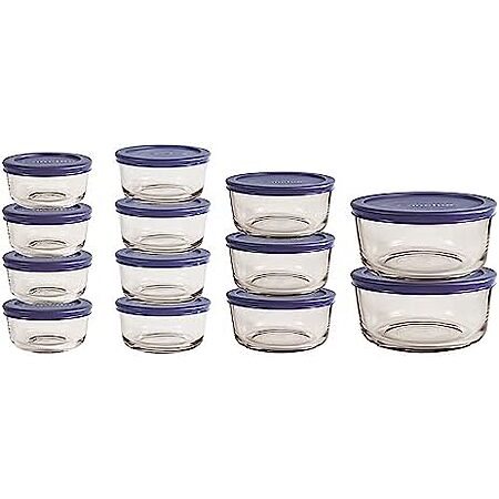 26-Piece Anchor Hocking Glass Storage Containers with SnugFit Lids (Navy Lids) on sale for