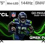 Costco Wholesale has for their Members: 75" TCL 75QM6K QM6K Series QD-Mini LED 4K UHD 144Hz Google Smart TV (2025) + 3-Year Allstate Protection Plan on sale for $749.99. Shipping is free.