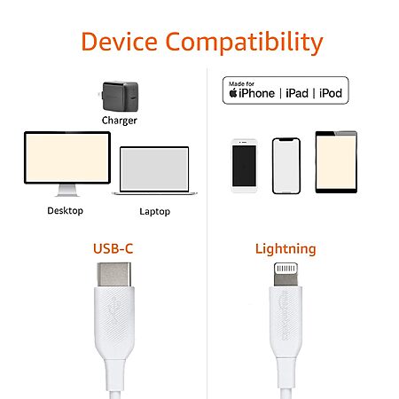 $4.53*:Amazon Basics USB - C to Lightning ABS Charger Cable, MFi Certified Charger for Apple iPhone 14 13 12 11 X Xs Pro, Pro Max, Plus, iPad, 6 foot, White