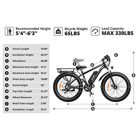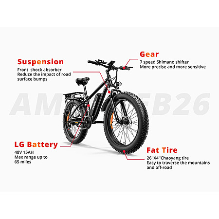 26" AMYET EB26 1500W Peak 48V 15AH Electric Fat Tire Bike $333 + Free S/H