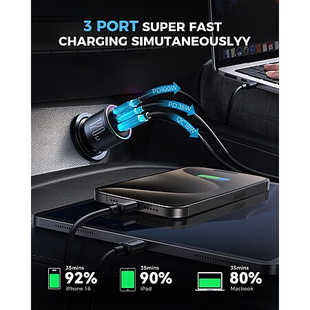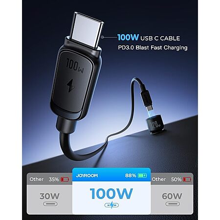 3-Port Joyroom 120W USB-C (PD100 & 35W) & USB-A QC 3.0 Car Charger w/ 4' 100W USB-C Cable $11.09 + Free Shipping w/ Prime or on $35+