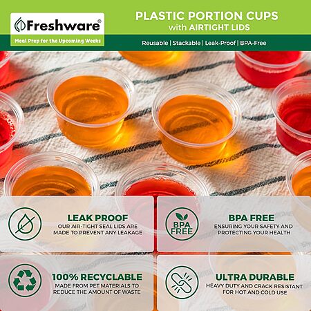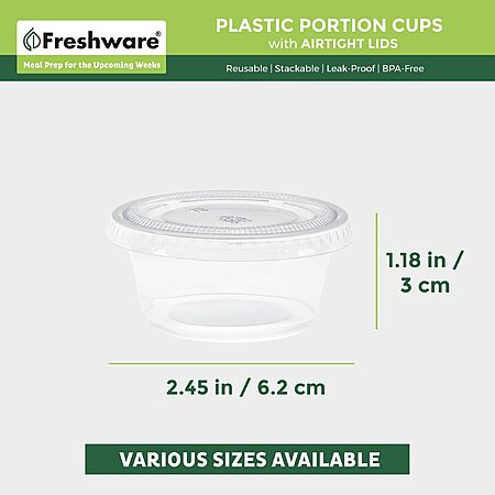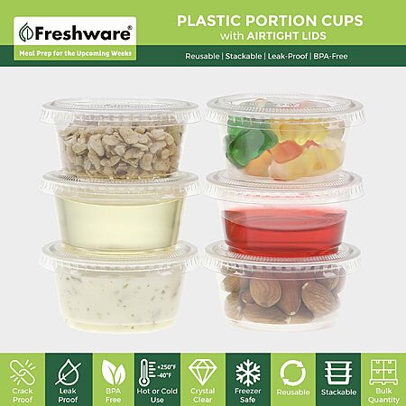 200-Count 2-Oz Freshware Plastic Portion Souffle Cups w/ Lids (Clear) $8.49 + Free Shipping w/ Prime or on $35+