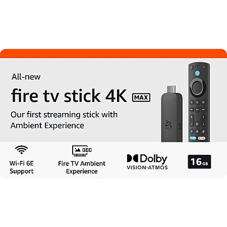 Amazon Fire TV Stick 4K Max streaming device, with AI-powered Fire TV Search, supports Wi-Fi 6E, free & live TV without cable or satellite $39.99