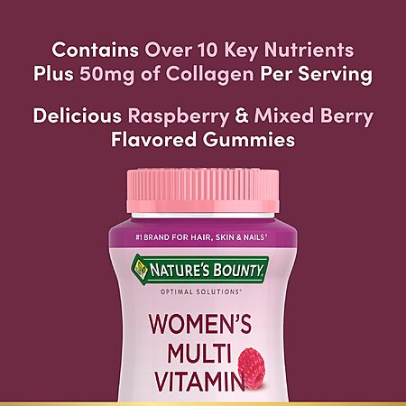 Nature's Bounty Optimal Solutions Women's Multivitamin, Immune and Cellular Energy Support, Bone Health, Raspberry Flavor, 80 Gummies, 40 Total Servings