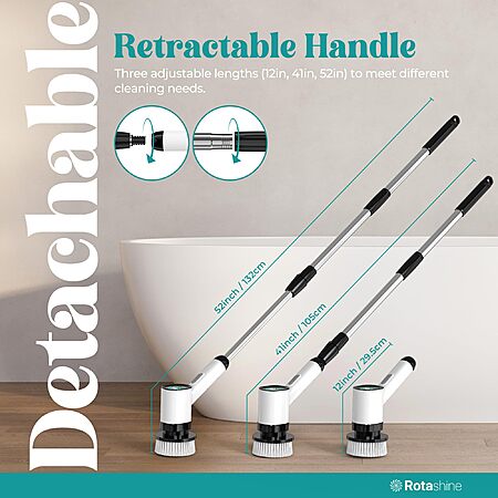 Model: RotaShine Electric Spin Scrubber - Electric Scrubber for Cleaning with 7 Replaceable Heads - Full-Body Waterproof Tub Scrubber with Long Handle - Electric Brush Cleaner for Bathroom
